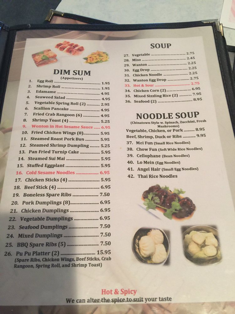 “ When you crave Chinese, this is your decent lonsgtanding local go-to. Not great or near it but oh so consistent. All the basics and even some thai options. Efficient service, the owners always there, lots of take-out. Clean, quiet. Get the brocoli with garlic sauce, the ribs, hot and sour soup, egg rolls, general tsao. Suburban NJ but really its old Chinatown before all food fads (except for Thai). ”