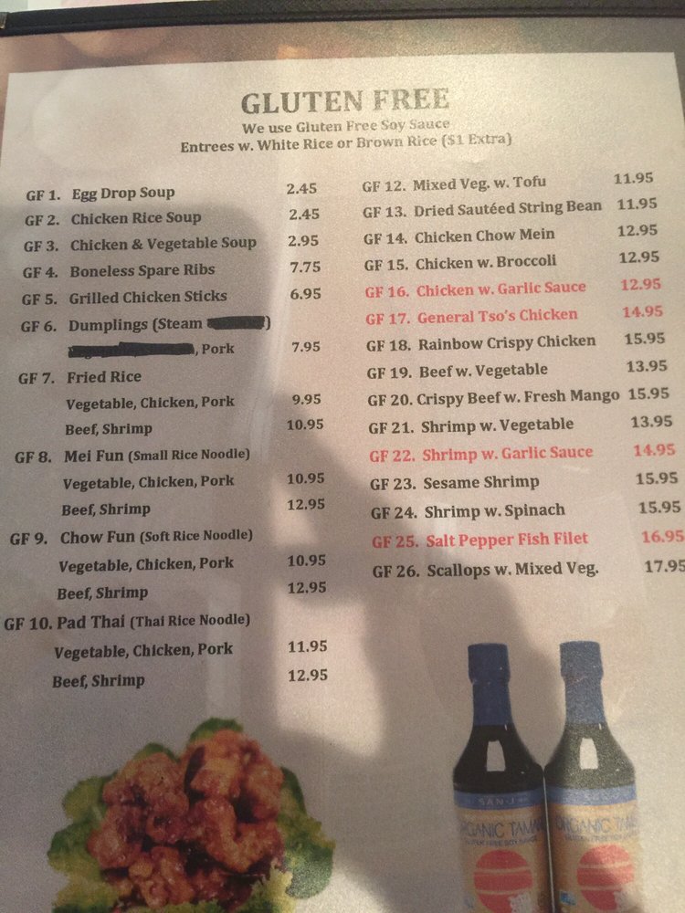 “ Great gluten free food. I have celiac and I do well. The Chow Fun is excellent as well as the fried rice ”